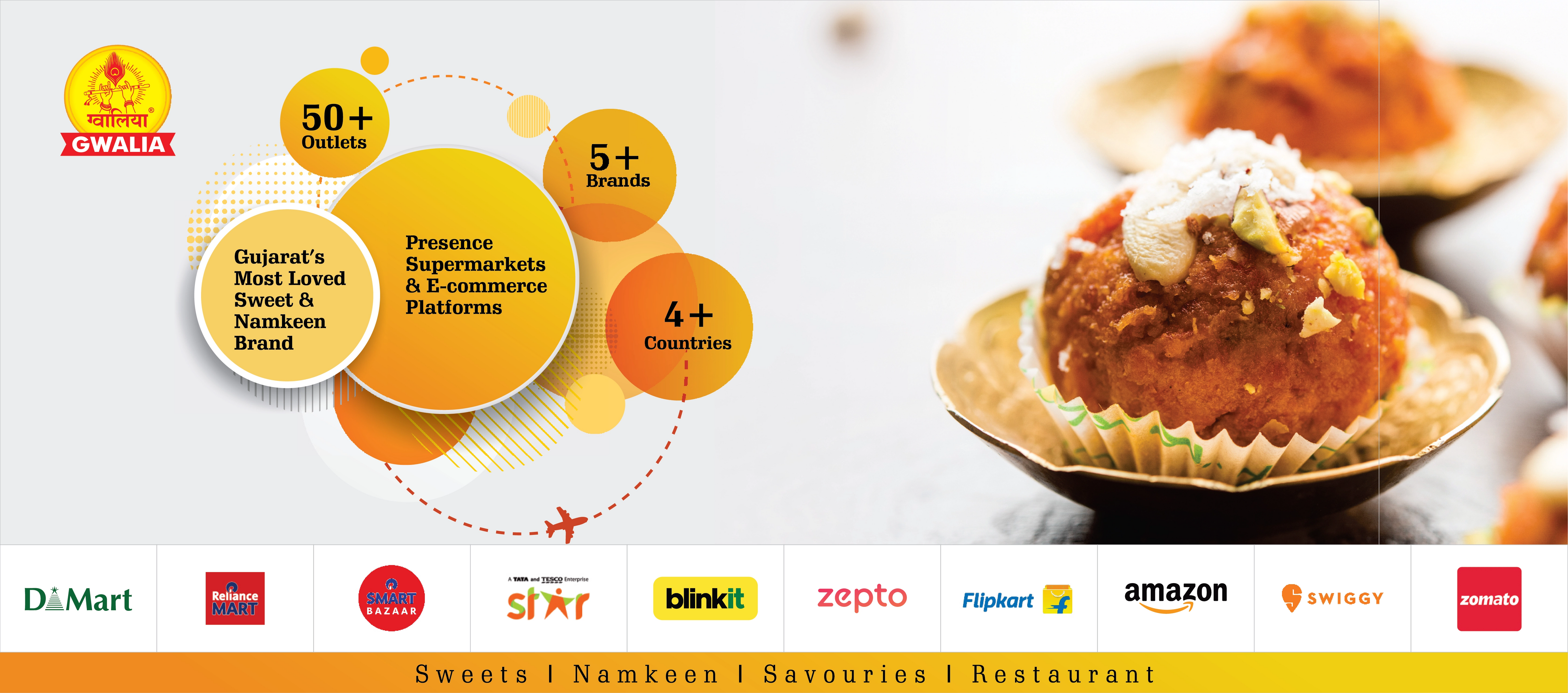 Founded in 1994, Gwalia Sweets Pvt. Ltd. has been a beacon of excellence in the food industry, proudly rooted in the vibrant state of Gujarat, India. Our inaugural retail outlet, located at Stadium Circle, Navrangpura, marked the beginning of a journey that has since flourished into a thriving network of over fifty outlets. These are strategically situated in prime business and residential hubs across major cities including Ahmedabad, Baroda, Rajkot, Bhavnagar, Morvi, Mumbai, and Bangalore.