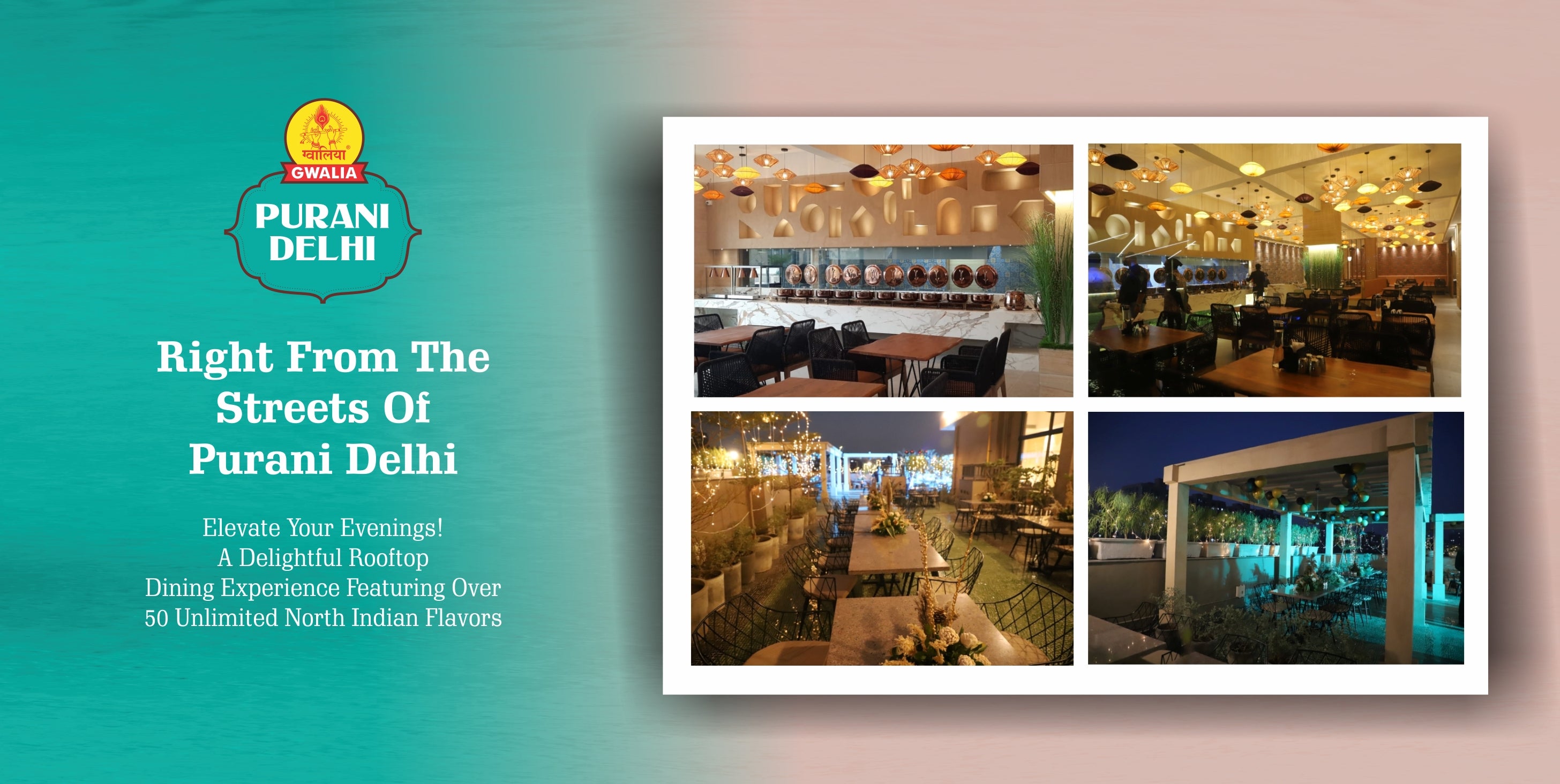 Experience the biggest rooftop dining in Ahmedabad at Gwalia Purani Delhi, located in South Bopal, spread across 17,000 sq.ft. Savor the authentic flavors of Old Delhi with our street-style North Indian food, offering an unlimited buffet and live counters. Indulge in a feast with over 51 items, ranging from delicious chaats to mouthwatering desserts. This is the perfect venue for hosting grand terrace parties, enjoying the true taste of Delhi. Whether you're planning a celebration or simply craving a taste of home, Gwalia Purani Delhi offers a delightful culinary journey with unlimited dining options.